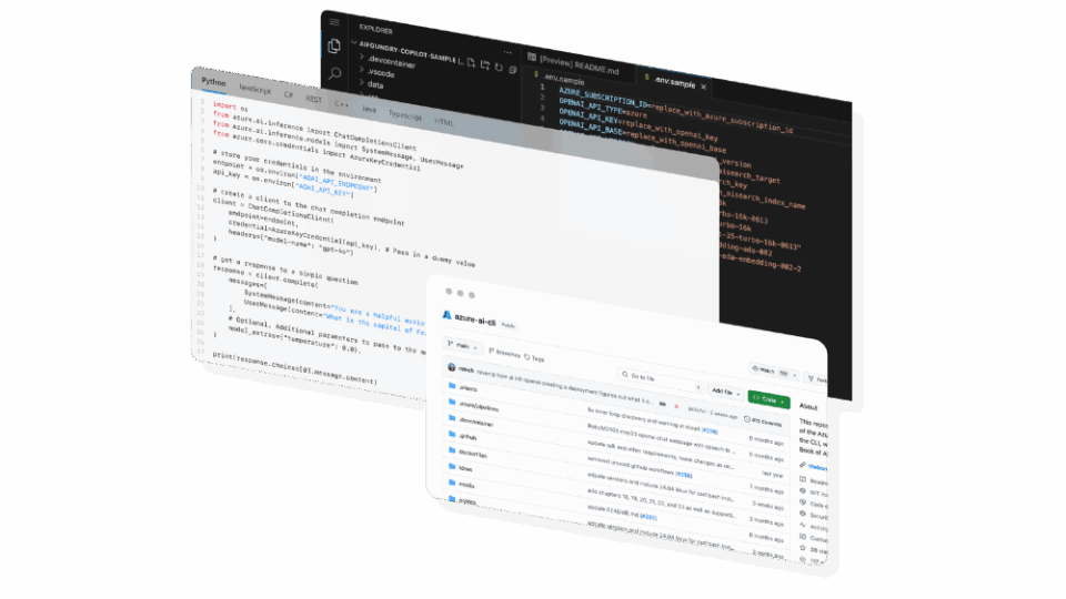 - Konsistent API- og SDK-understøttelse (Python, C#, JavaScript/TypeScript osv.) til integration af apps, agenter eller arbejdsgange på tværs af miljøer.